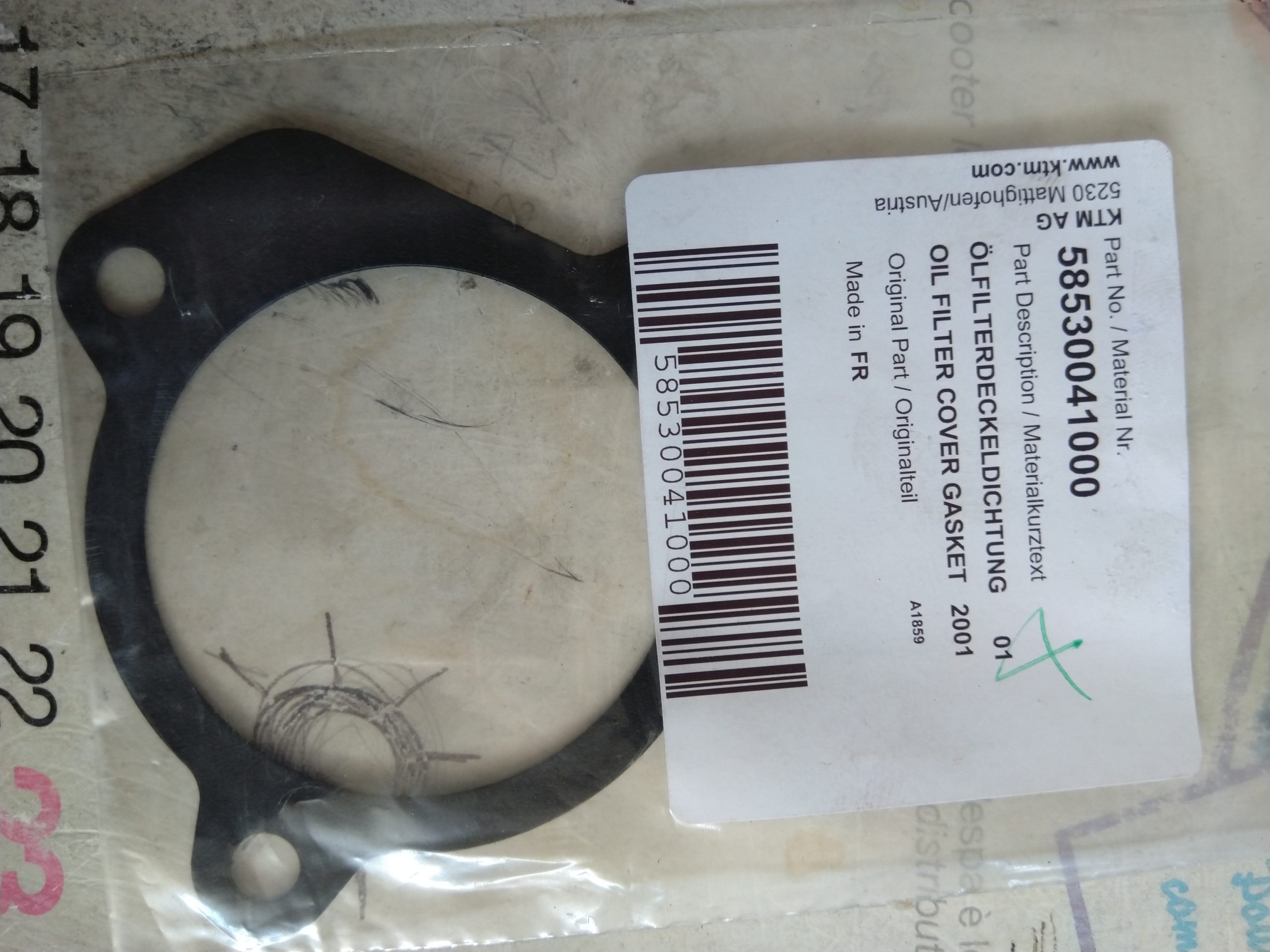 GUARNIZIONE FILTRO OLIO 58530041000RICAMBI KTM Guarnizione filtro olio, nuova Ktm originale, new oil filter cover gasket, Ktm genuine cod.58530041000 (5) KTM lc4, smc, duke, adventure, sxc, egs, exc, sm, enduro 400, 450, 620, 625, 640, 660, dal 1996 al 2007